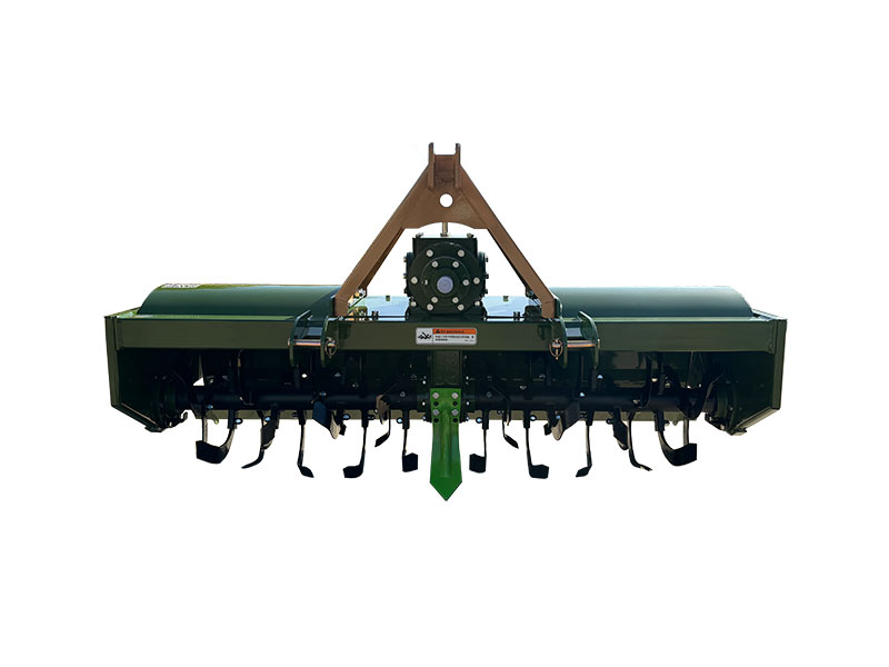 由拖拉機(jī)動(dòng)驅(qū)動(dòng)的耕整地作業(yè)機(jī)具,利用刀軸上旋耕刀的旋轉(zhuǎn)運(yùn)動(dòng)和機(jī)具前進(jìn)的復(fù)合運(yùn)動(dòng)對土地進(jìn)行旋耕碎土作業(yè),能一次完成耕、耙、平的作業(yè)。具有旱田碎土充分,地面平整,水田泥爛成漿,適應(yīng)性廣、作業(yè)效率高等優(yōu)點(diǎn)。