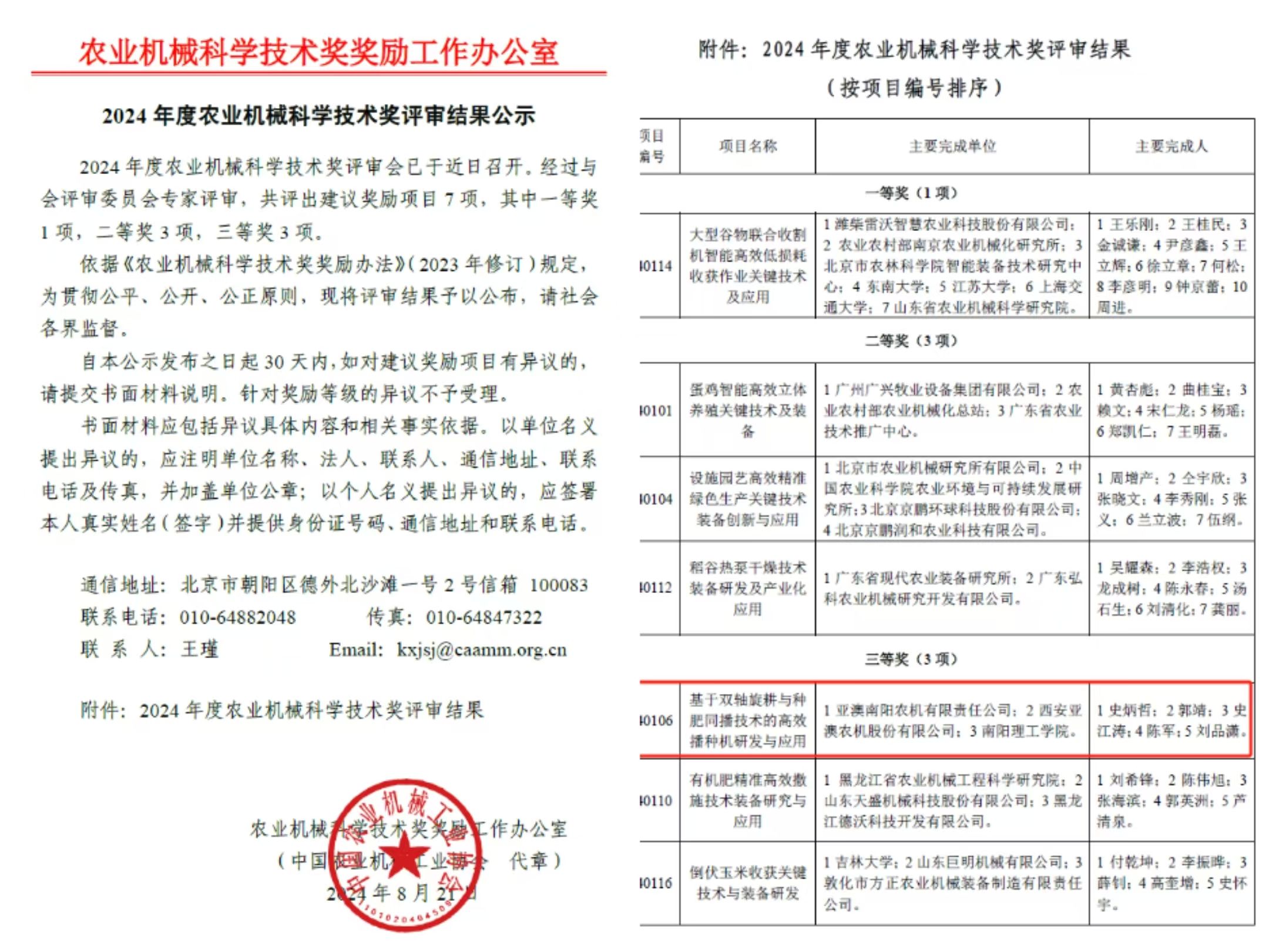 在科技與農(nóng)業(yè)深度融合的時(shí)代浪潮中,一則振奮人心的喜訊傳來 ——亞澳農(nóng)機(jī)成功榮獲農(nóng)業(yè)機(jī)械科學(xué)技術(shù)獎(jiǎng)!