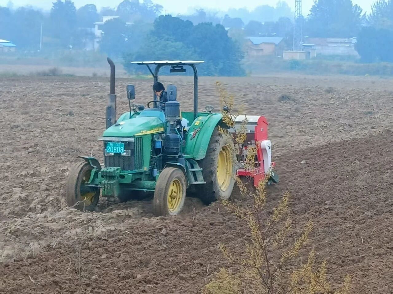在百公里外的銅川市耀州區(qū)小丘鎮(zhèn)中原村,亞澳農(nóng)機(jī)同樣成為搶種主力。播種期推遲了近十天,土壤又濕,最怕播深不均和倒伏。農(nóng)機(jī)手操控著亞澳寬幅溝播機(jī)穿梭田間,機(jī)具搭載的指夾式排種器實(shí)現(xiàn)精準(zhǔn)下種,配合可調(diào)節(jié)播深系統(tǒng),將播種深度嚴(yán)格控制在24cm的最佳范圍,既滿足銅川市農(nóng)機(jī)推廣站副站長姚關(guān)盈提出的淺播搶積溫要求,又通過均勻播種避免了播量過大易倒伏的風(fēng)險(xiǎn)。截至目前,銅川市已調(diào)度1600余臺(tái)套農(nóng)機(jī)投入秋播,亞澳機(jī)具憑借旋耕、播種、施肥一體化優(yōu)勢,大幅提升了濕墑地塊的作業(yè)效率,助力農(nóng)戶把延誤的農(nóng)時(shí)搶回來。