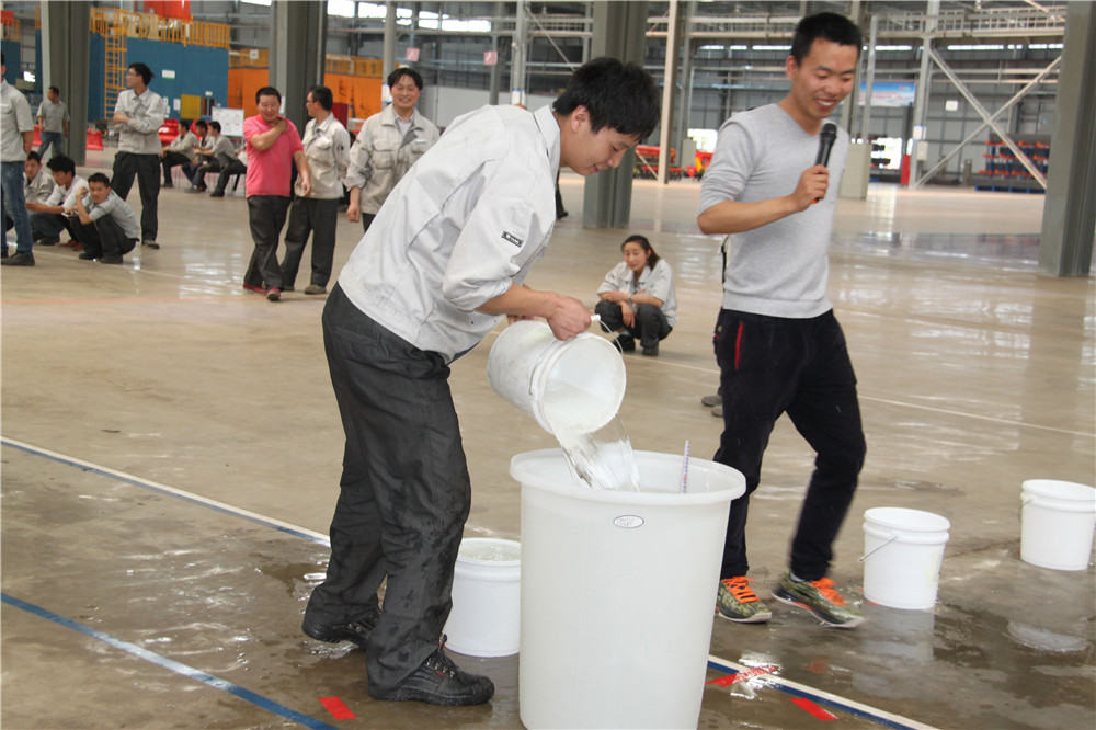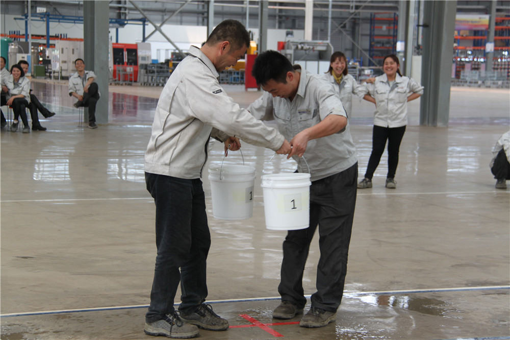 下午13:30在運動場出現(xiàn)了擺放有序的水桶,這是我們的第二項活動:精益運輸大接力,取水點的距離分別大于等于10米,每個桶分別裝滿10L水,每組隊員是五個人,要在120秒內完成大桶水量的收集,超過120秒的隊員淘汰出局,在規(guī)定的時間內,水量收集多者獲勝,抽簽決定出場順序,這項活動是讓員工明白精益化生產體系的精髓所在之處;減少過程浪費,實現(xiàn)低成本的快速交付,滿足客戶的同時,做到細節(jié)控制,提升產品使用價值,提升公司盈利空間。比賽開始了只見隊員雙手提起20L的水往下一站的隊友那里送,中間會有灑水會很累,但是每個人都為了自己隊伍的榮譽拼盡全力向終點奔去,旁邊的隊友為他們加油、吶喊,最終自焊獲得第一名。