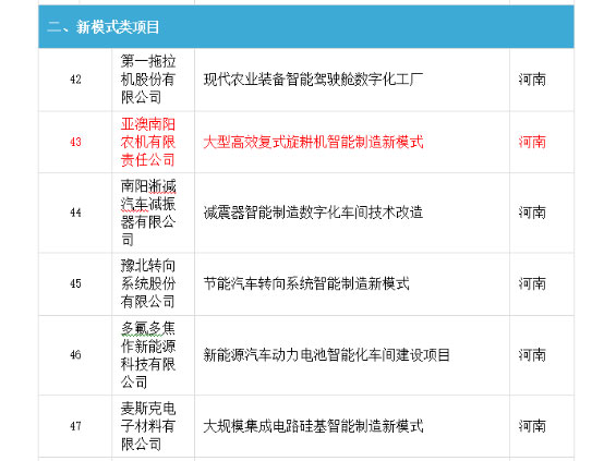 亞澳農(nóng)機被國家工信部評為2017年智能制造綜合標準化與新模式應(yīng)用項目名單