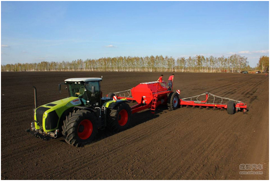 3、科樂收XERION系列剛剛上市的時(shí)候售價(jià)高達(dá)100萬(wàn)美金。這款采用無(wú)級(jí)變速的拖拉機(jī)采用卡特彼勒 C13 6 缸發(fā)動(dòng)機(jī),最大功率可達(dá) 401–487 馬力,最高時(shí)速可達(dá)50公里/小時(shí)。